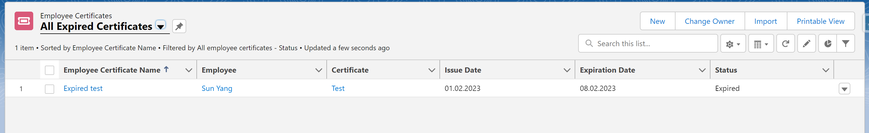 - You can now see certificate expiration dates on the employee view in Salesforce.