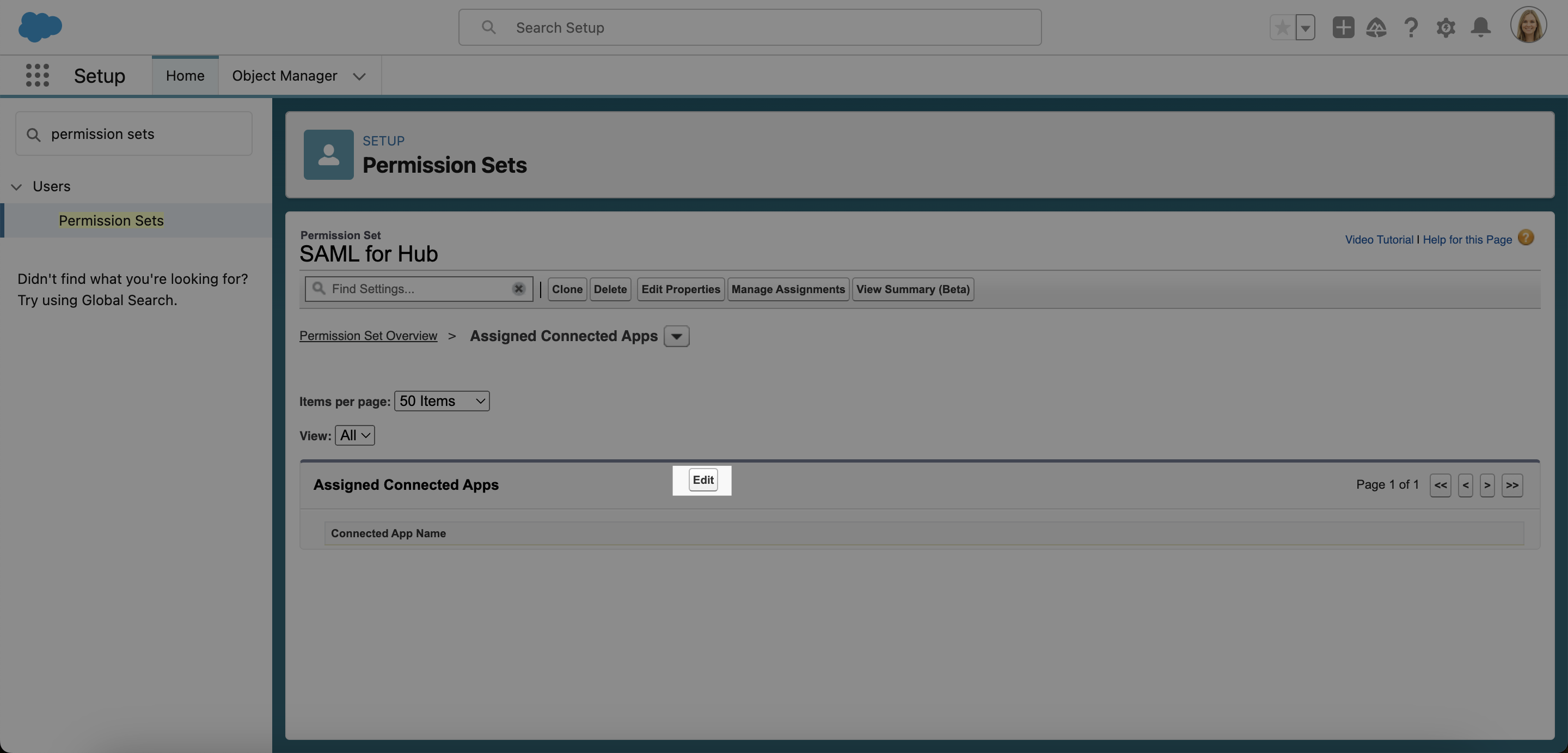 - Scrollen Sie nach unten zu Permission Set Assignments und klicken Sie auf Edit Assignments.