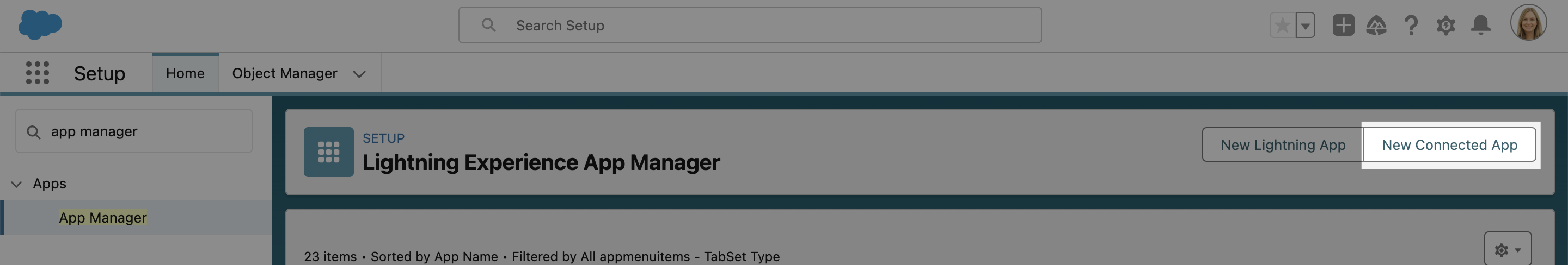 - Der nächste Schritt besteht darin, eine App zu erstellen, um Ihren Employee Hub-Login mit Salesforce zu verbinden. Verwenden Sie die Suchleiste im linken Menü, um die Seite App Manager zu finden.