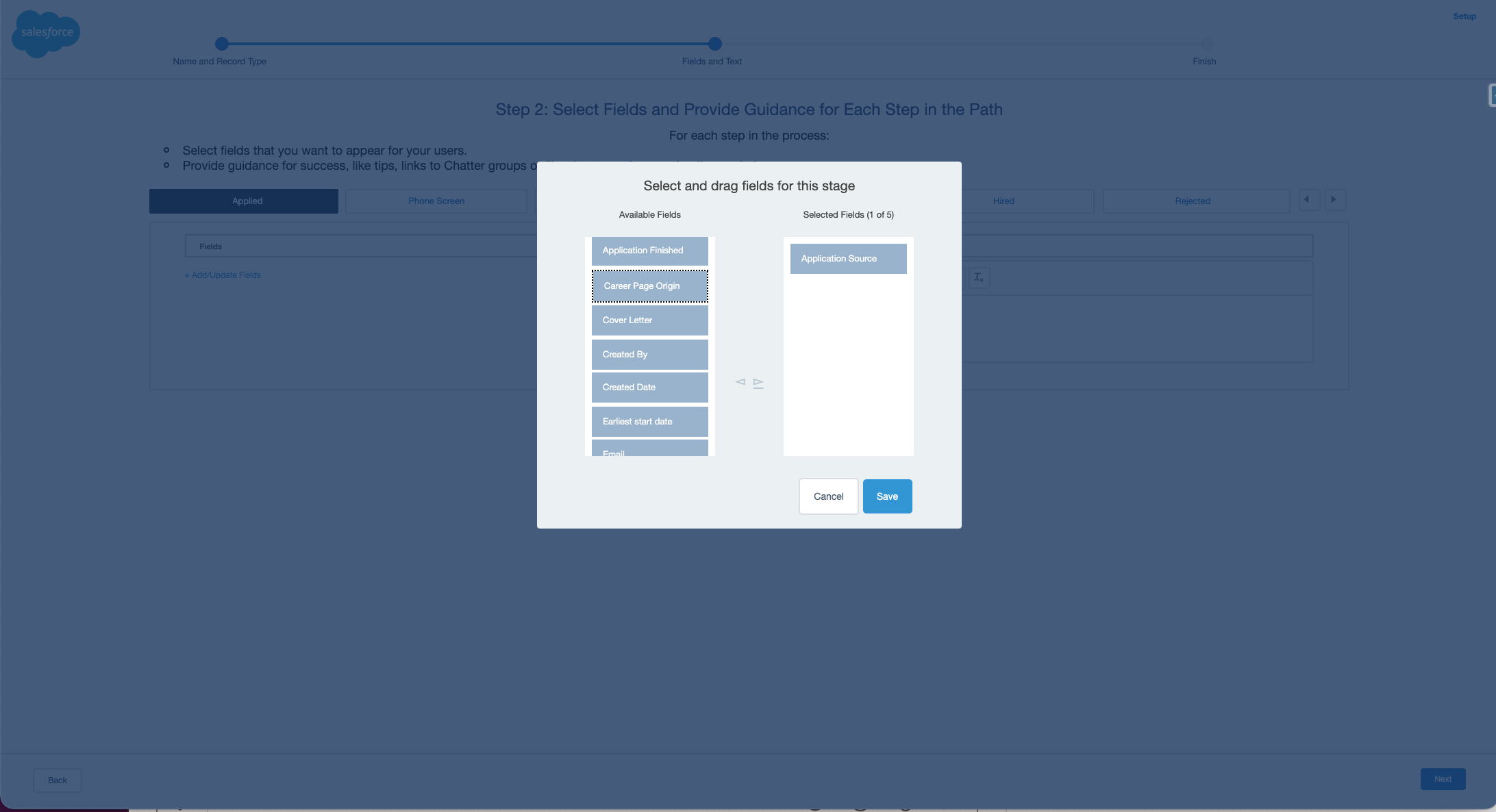 In Salesforce sind Paths eine hilfreiche Funktion, um Ihre Benutzer durch die Schritte eines Prozesses zu führen. Mit der flair Recruiting-App können Sie einen Path erstellen, um die Phasen des Kandidaten-Funnels anzuzeigen und Ihren Recruitern zu helfen, den Fortschritt von Stellenbewerbern zu verfolgen.