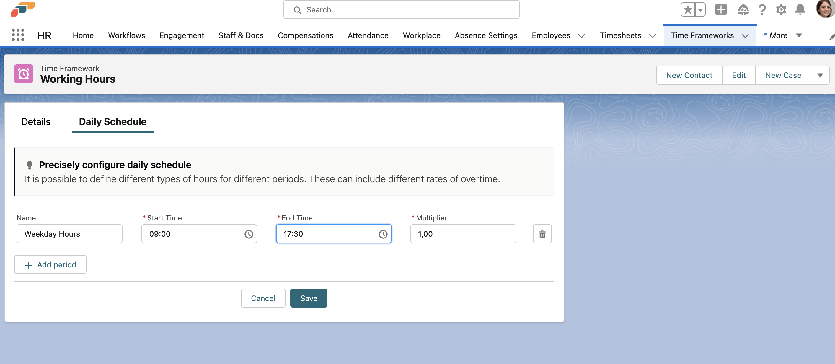 Frame Working Hours: Set defined time periods during which employees can log work hours using Time Frameworks on flair HR. E.g. Make normal working hours loggable between 9.00am-5.30pm. Or fix overtime to a certain number of hours. 🕒