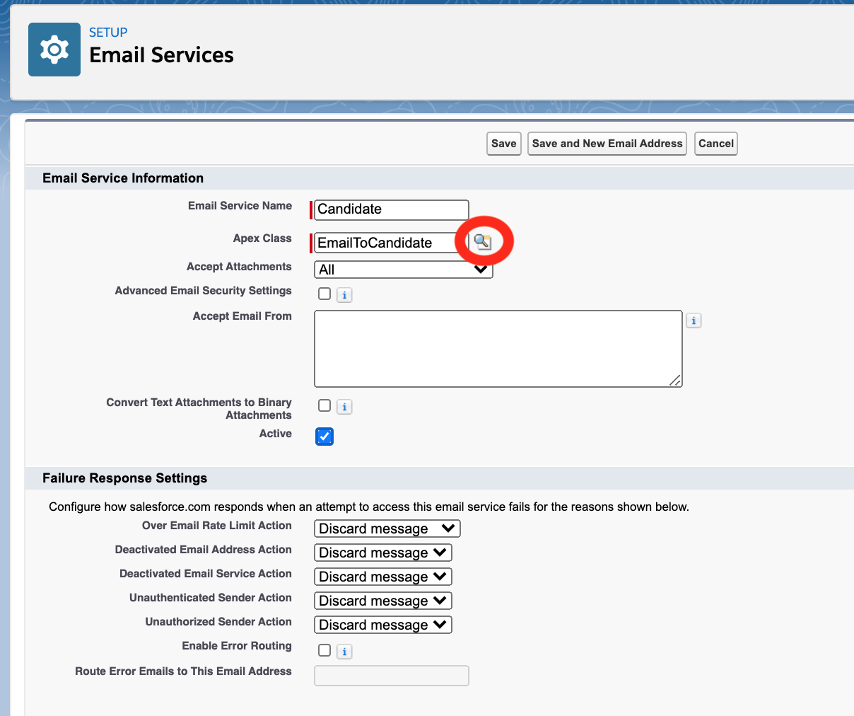 In Salesforce Setup, search for Email Services in the Quick Find box in the left pane.