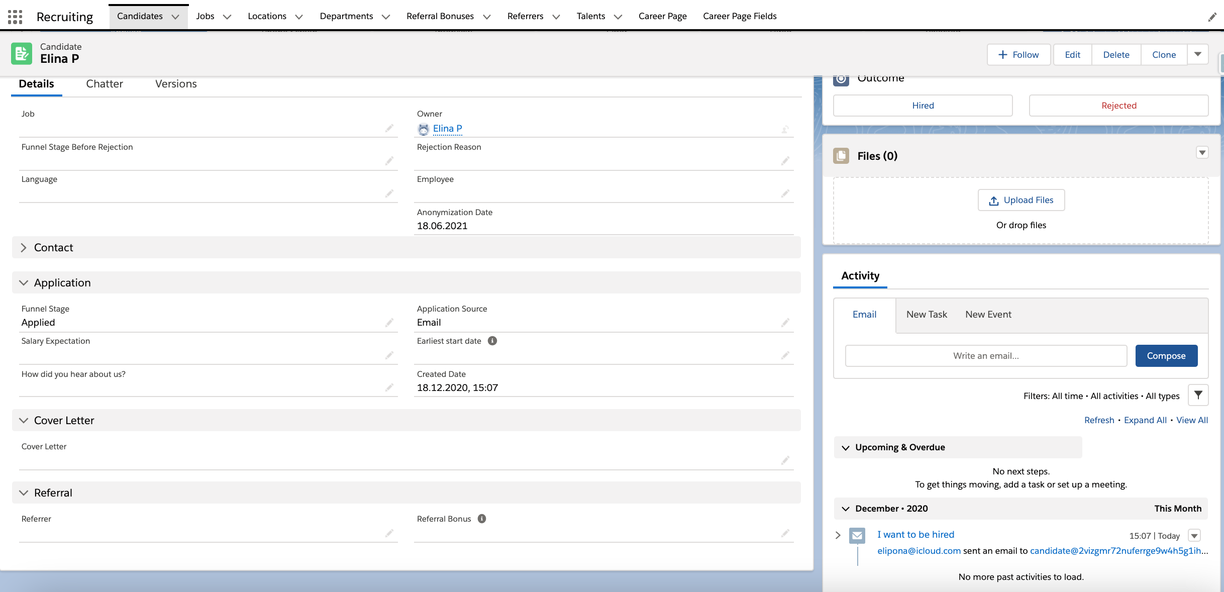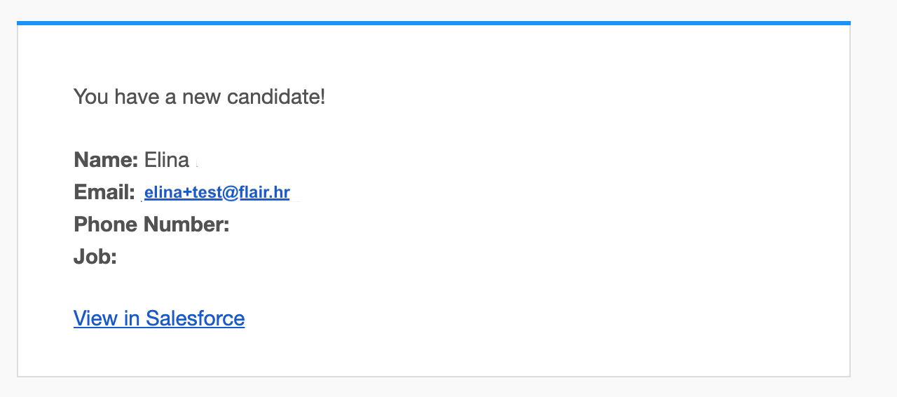 The new candidate is now automatically saved to Salesforce. You can view them in the Candidates tab in your flair Recruiting app.