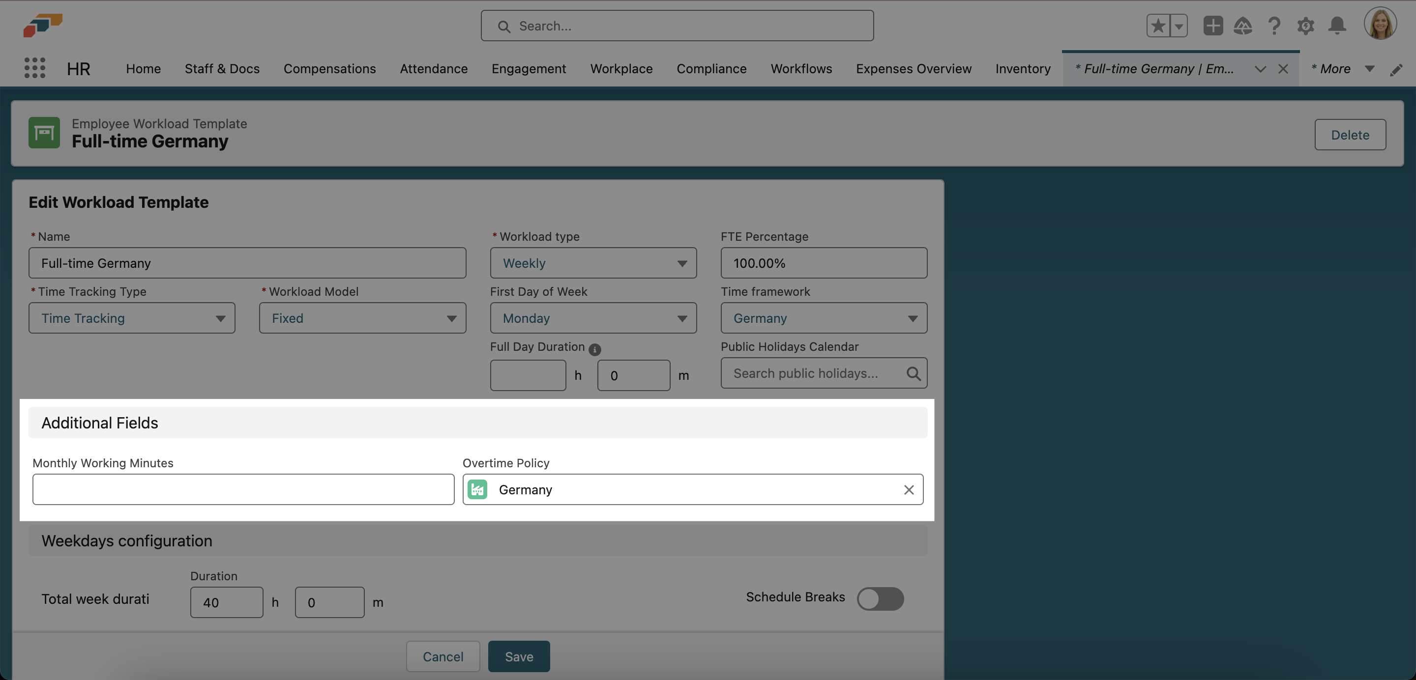 1. Now go back to your workload template and refresh the page. Your new section and fields should now be visible.